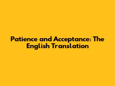 Patience And Acceptance: The English Translation