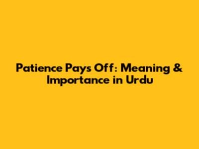 Patience Pays Off: Meaning & Importance In Urdu