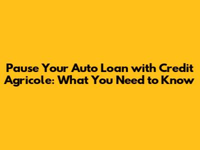 Pause Your Auto Loan With Credit Agricole: What You Need To Know