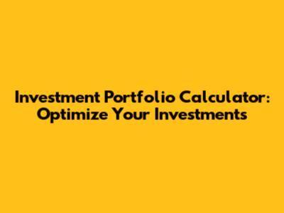Investment Portfolio Calculator: Optimize Your Investments