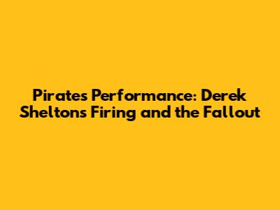 Pirates' Performance: Derek Shelton's Firing And The Fallout