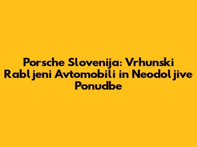 Porsche Slovenija ponuja različne možnosti za nakup rabljenih vozil. Tukaj so glavne možnosti, ki jih lahko raziščete: