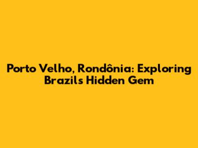 Porto Velho, Rondônia: Exploring Brazil's Hidden Gem
