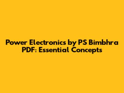 Power Electronics By PS Bimbhra PDF: Essential Concepts