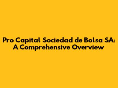 Pro Capital Sociedad De Bolsa SA: A Comprehensive Overview