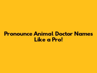 Pronounce Animal Doctor Names Like A Pro!