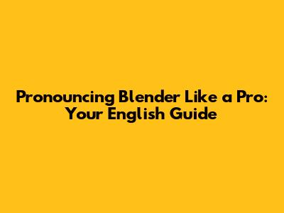 Decoding the Sounds: How to Say "Blender" Correctly