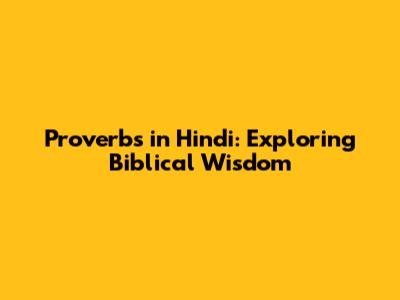 Proverbs In Hindi: Exploring Biblical Wisdom