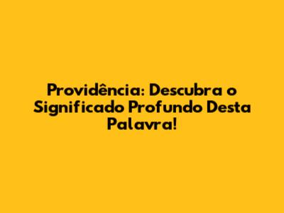 Providência: Descubra O Significado Profundo Desta Palavra!
