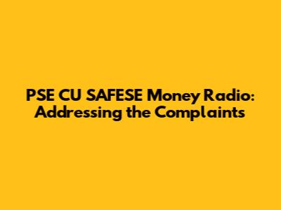 PSE CU SAFESE Money Radio: Addressing The Complaints