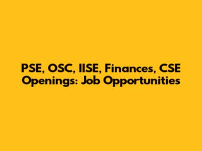 PSE, OSC, IISE, Finances, CSE Openings: Job Opportunities