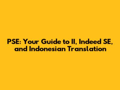 PSE: Your Guide To II, Indeed SE, And Indonesian Translation