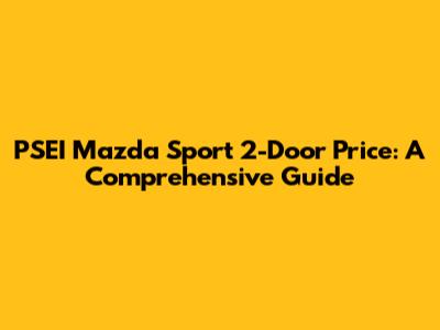 PSEI Mazda Sport 2-Door Price: A Comprehensive Guide