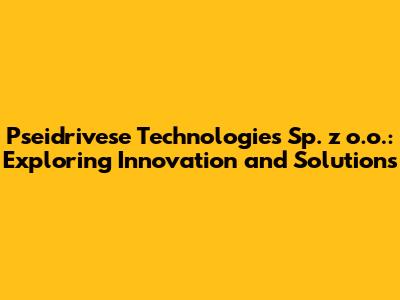 Let's dive into Pseidrivese Technologies Sp. z o.o., a company that's likely making waves in its industry. While specific details might require a deeper investigation, we can explore what a technology company with such a name might be involved in and discuss the general trends and innovations in the tech world. Whether you're an investor, a tech enthusiast, or simply curious, understanding companies like Pseidrivese helps you stay informed about the ever-evolving technological landscape. This article aims to provide a comprehensive overview of what Pseidrivese Technologies could be about, its potential impact, and how it aligns with current industry trends.