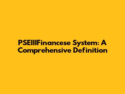 PSEIIIFinancese System: A Comprehensive Definition