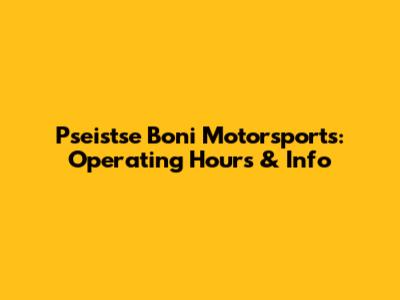 Pseistse Boni Motorsports: Operating Hours & Info