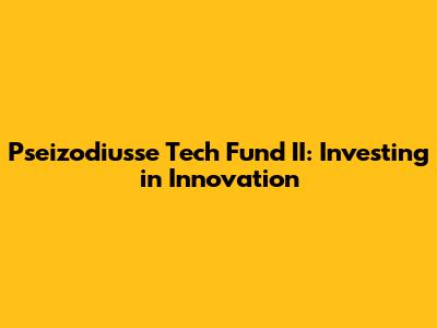 Pseizodiusse Tech Fund II: Investing In Innovation