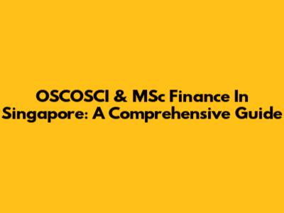 OSCOSCI & MSc Finance In Singapore: A Comprehensive Guide