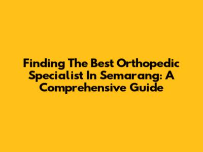 Finding The Best Orthopedic Specialist In Semarang: A Comprehensive Guide
