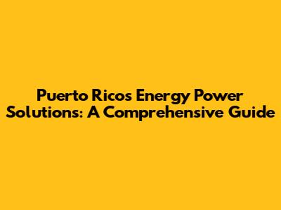 Puerto Rico's Energy Power Solutions: A Comprehensive Guide