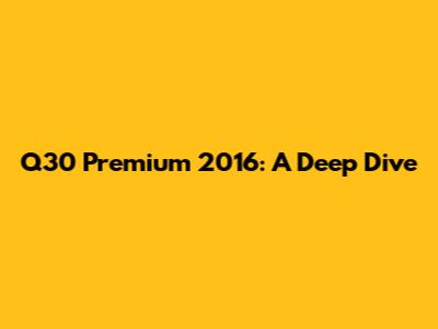 Q30 Premium 2016: A Deep Dive