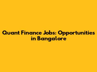Quant Finance Jobs: Opportunities In Bangalore