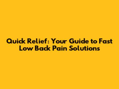 Quick Relief: Your Guide To Fast Low Back Pain Solutions