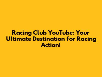 Racing Club: Your YouTube Hub For Speed & Thrills!