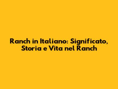 Ranch In Italiano: Significato, Storia E Vita Nel Ranch