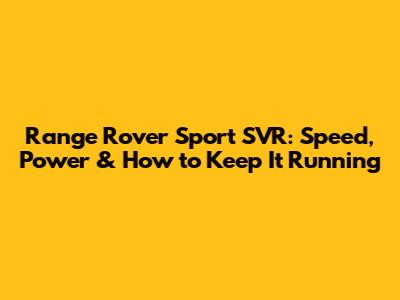 Range Rover Sport SVR: Speed, Power & How To Keep It Running