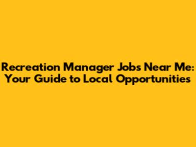 Recreation Manager Jobs: Find Local Opportunities Now!