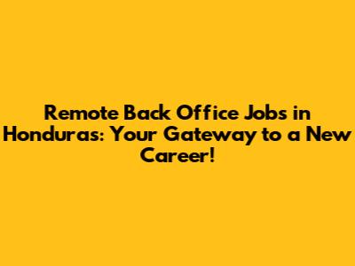 Remote Back Office Jobs In Honduras