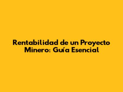 Rentabilidad De Un Proyecto Minero: Guía Esencial