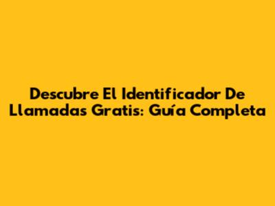 Descubre El Identificador De Llamadas Gratis: Guía Completa