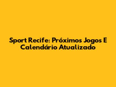 Sport Recife: Próximos Jogos E Calendário Atualizado