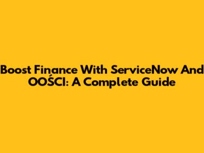 Boost Finance With ServiceNow And OOŚCI: A Complete Guide