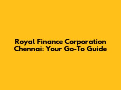 Royal Finance Corporation Chennai: Your Go-To Guide