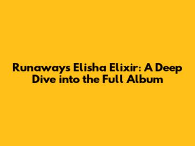 Runaway's Elisha Elixir: A Deep Dive Into The Full Album