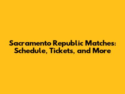 Sacramento Republic Matches: Schedule, Tickets, And More
