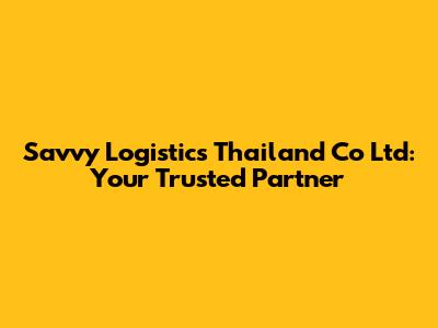 Savvy Logistics Thailand: Your Trusted Partner