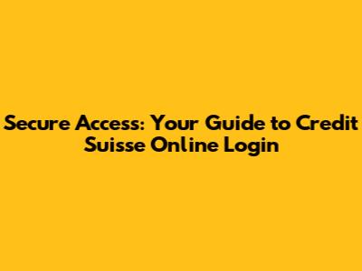 Secure Access: Your Guide To Credit Suisse Online Login