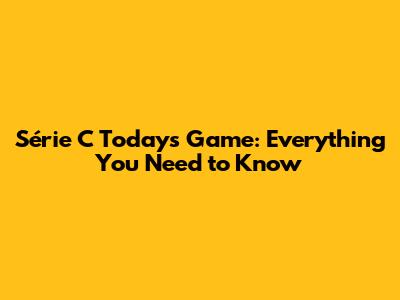 Série C Today's Game: Everything You Need To Know
