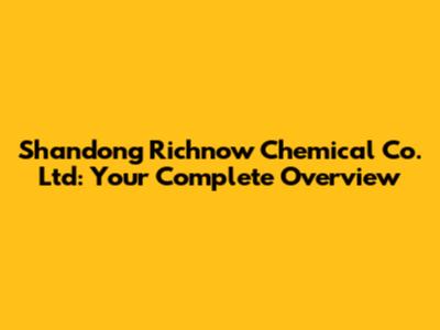 Shandong Richnow Chemical Co. Ltd: Your Complete Overview