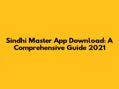 Sindhi Master App Download: A Comprehensive Guide 2021