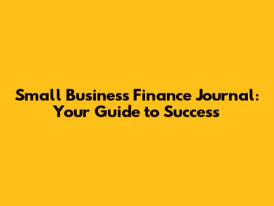 Small Business Finance Journal: Your Guide To Success