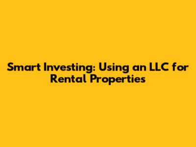 Smart Investing: Using An LLC For Rental Properties