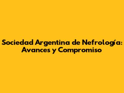 Sociedad Argentina De Nefrología: Avances Y Compromiso