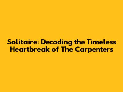 Solitaire: Unpacking The Heartbreak Of The Carpenters' Classic