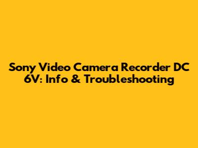 Sony Video Camera Recorder DC 6V: Info & Troubleshooting