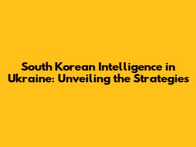 South Korean Intelligence In Ukraine: Unveiling The Strategies